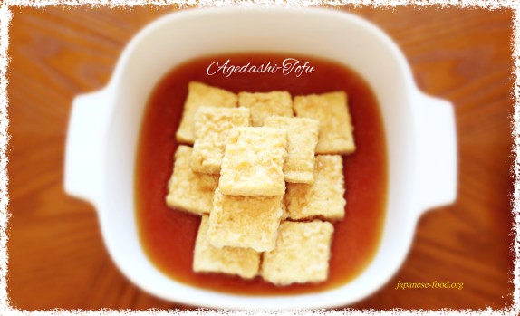 Agedashi-Tofu, which is a typical Japanese homemade dish, is fried tofu with Dashi sauce.