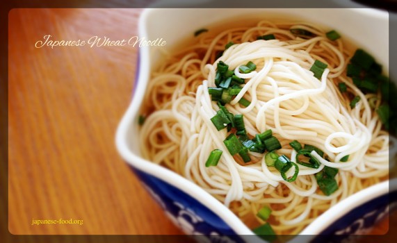 Somen is a Japanese wheat noodle. In Japan, people traditionally eat cold Somen with cold broth in the summer. At some summer events, Somen noodles are placed in a long flume of bamboo with ice cold water. As the somen pass by, people pick them up with chopsticks and dip them in the broth. Somen has been eaten at ceremonial occasions since about 700 years ago.