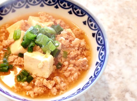 Mapo-Tofu is a popular Chinese dish. This recipe is totally my mother’s creation based on Mapo-Tofu. My mother came up with this recipe because the original dish is so spicy and I couldn’t handle it. This dish is very healthy because it has great protein, which comes from a combination of meat and tofu, so we always had this Non-Spicy Mapo-Tofu in our house.
